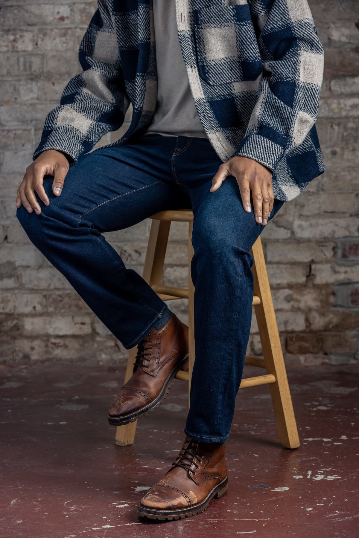 The Automatic Jean is our loosest, most relaxed fit, with extra room in the hips and thighs. It will feel the way a perfectly broken-in pair feels from day one. Dark Indigo, a classic dark wash with contrast gold stitching, is part of our signature core line of denim. Built with 4 way athletic stretch, Revtown is making classic denim even better than you remember.